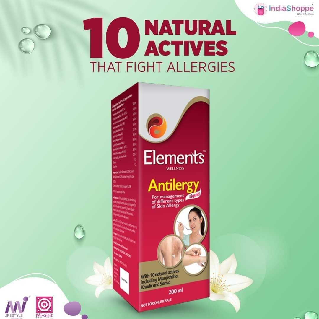 There is a natural way of treating problems of allergy Elements Wellness Antilergy is a very effective solution for different allergy problems. It contains 10 natural actives like Manjistha, Khadir, Sariva and Nimba plus others help prevent and protect from allergies. Immune-boosting herbs work to protect mast cells from rupture and release of histamines. Some of the herbs promote excretion of histamines provides protection from an allergic reaction on skin.